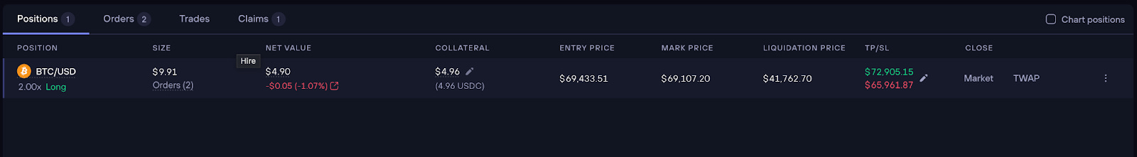 Users can now toggle between displaying their position’s size in either USD value or token amount directly in the positions table.